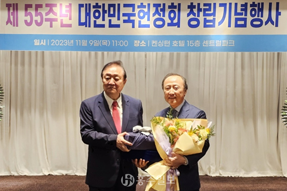 국회 헌정회는 이날 여의도 켄싱턴호텔 15층 센트럴파크홀에서 창립 55주년 기념식을 열고 헌정회원으로서 정치선진화와 헌정회 발전에 기여한 5명에게 헌정대상을 수여했다.