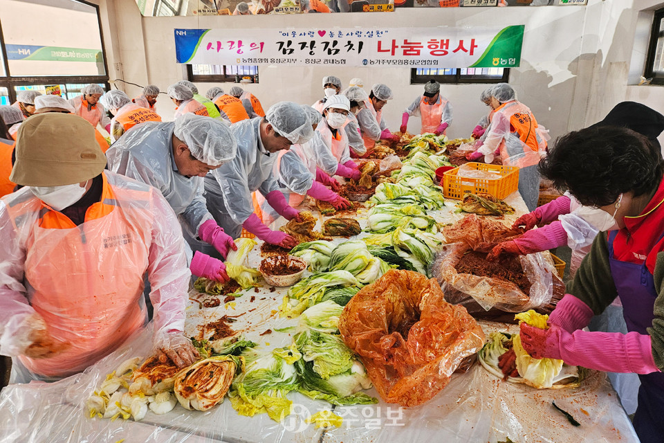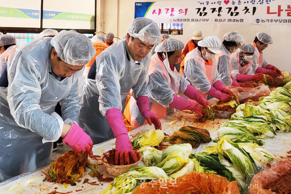 군지부와 지역농협 직원, ㈔농가주부모임 홍성군연합회(회장 전용란) 회원 등 45여 명이 함께한 가운데, 구항농업협동조합(조합장 황규진)에서 김장김치 나눔행사와 영농폐기물 수거 봉사활동을 실시했다.