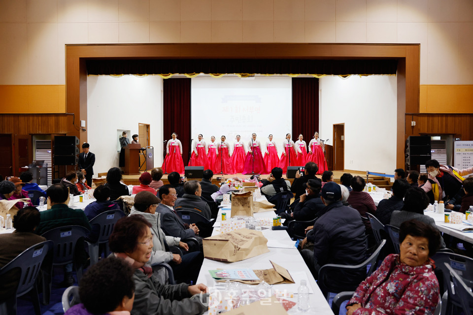 이번 주민총회 식순은 △1부 의식행사: 풍물·색소폰 연주, 내빈소개, 개회선언, 국민의례, 표창패 수여, 감사패 수여, 개회사, 환영사, 축사 △2부 운영보고·마을의제 발표: 주민자치 프로그램 발표, 1기 주민자치회 운영보고, 서부면 주민총회 설명, 서부면 자치계획 마을의제 발표 △3부 투표·마을의제 결과발표: 마을의제 투표, 투표결과 취합·주민자치 프로그램 발표, 마을의제 결과 발표·기타 주민의견 청취 순서로 진행됐다.