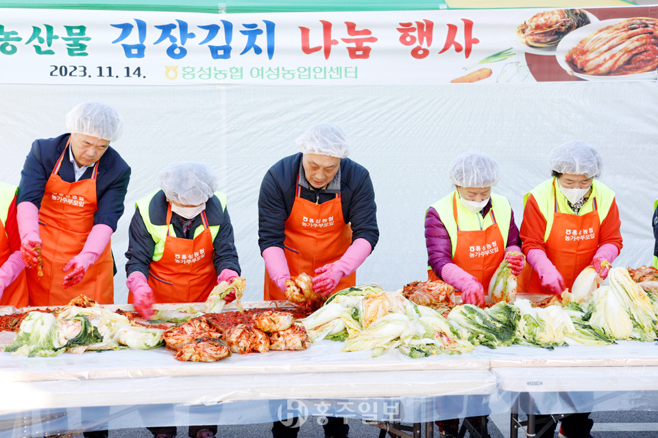 홍성농업협동조합(조합장 박문수)은 지난 14일 홍성농협 주차장에서 ‘내 고장 농산물 김장김치 나눔’ 행사를 실시하며 지역의 어려운 이웃을 위한 따뜻한 겨울나기에 동참했다.<사진>