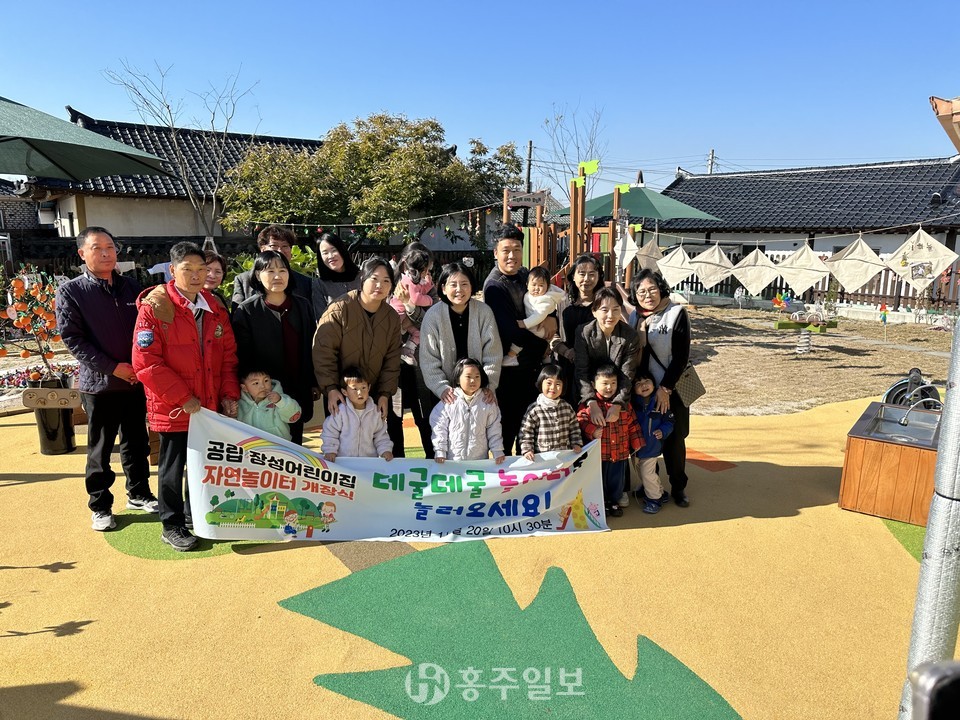 홍성군이 공립 장성어린이집에서 아이들의 모험심과 창의력을 향상시켜 줄 수 있는 ‘데굴데굴자연놀이터3’ 개장식을 지난 20일 개최했다.<사진>