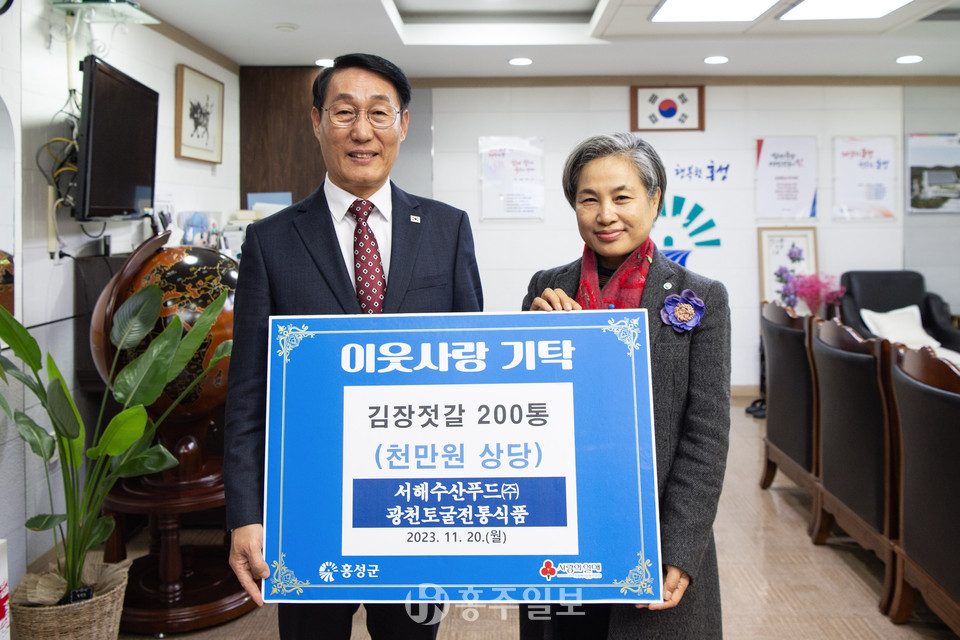 이용록 홍성군수는 “불경기에도 불구하고 매번 잊지 않고 새우젓, 멸치액젓을 기탁해 주셔서 감사드리며, 관내 어려운 이웃들이 겨울철 먹거리를 장만하는 데 큰 도움이 될 것”이라고 전했다.
