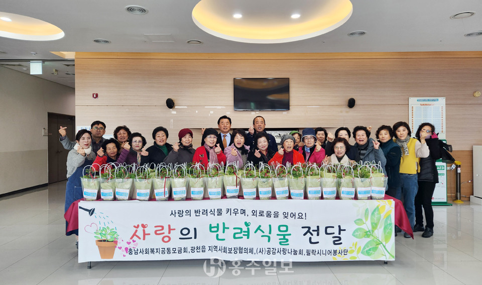광천읍지역사회보장협의체(민간위원장 이경열·공공위원장 정동규)는 지난 17일 필락 시니어봉사단 및 사단법인 공감사랑나눔회와 협력해 41명의 봉사자들이 80명의 독거노인에게 사랑의 반려 식물을 전달했다.