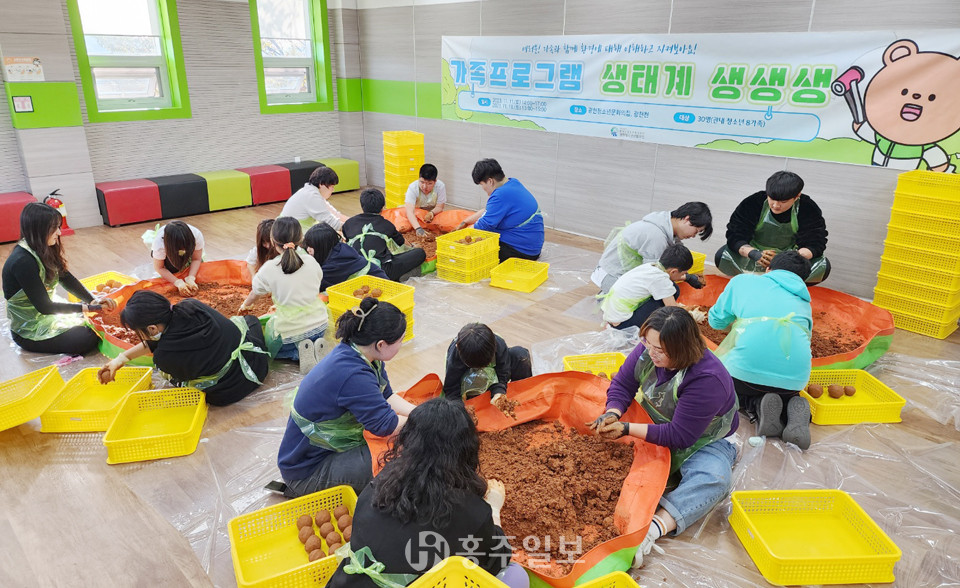 광천청소년문화의집(센터장 이윤정)은 지난 11일과 18일 양일간 광천청소년문화의집 다목적실과 광천천에서 관내 청소년 8가족 30명을 대상으로 EM흙공 만들기, 환경정화활동 등 가족프로그램 ‘생태계 생생생’을 진행했다.