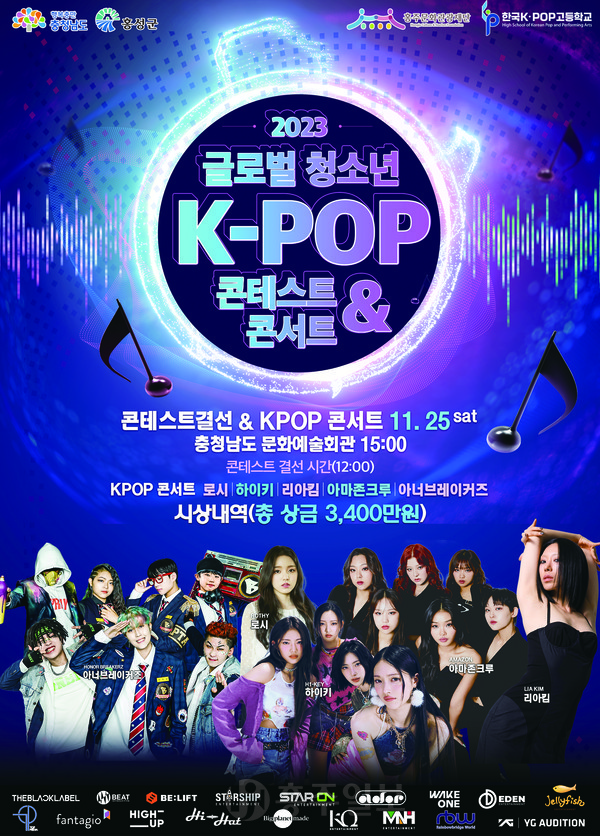 홍주문화관광재단(대표이사 최건환)과 한국K-POP고등학교(교장 박병규)가 주최·주관하고 충남도와 홍성군의 후원으로 열리는 이번 행사에는 글로벌 청소년 K-POP 콘테스트 결선 무대와 함께 로시, 하이키, 리아킴, 아마존크루, 아너브레이커즈 등의 공연이 펼쳐진다.