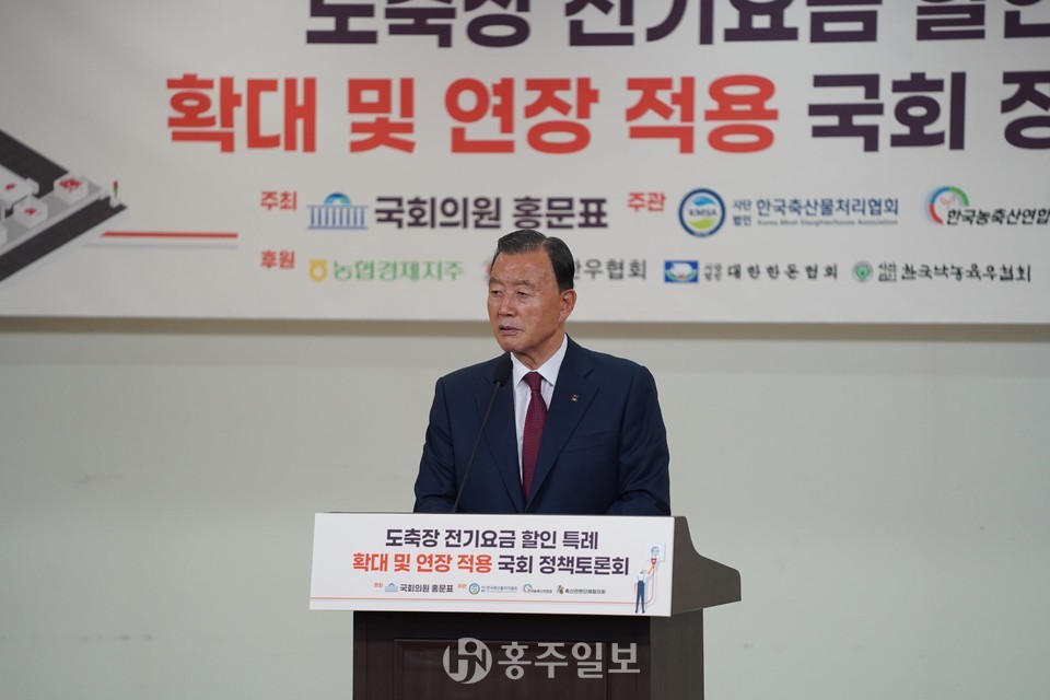 홍문표 국회의원(국민의힘, 홍성·예산) 주최로 지난 17일 국회의원회관 제2소회의실에서 ‘도축장 전기요금 할인 특례 확대 및 연장 적용 국회 정책토론회’가 개최됐다.
