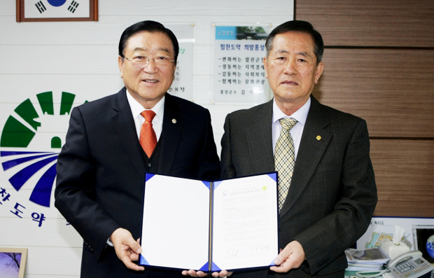 이날 협약식은 김석환 군수와 김종만 회장을 비롯해 관계자 10여명이 참석한 가운데 뉴새마을 가꾸기 사업의 성공적 추진을 위해 군과 새마을회가 공동 노력하는 것을 내용으로 하는 협약을 체결했다.