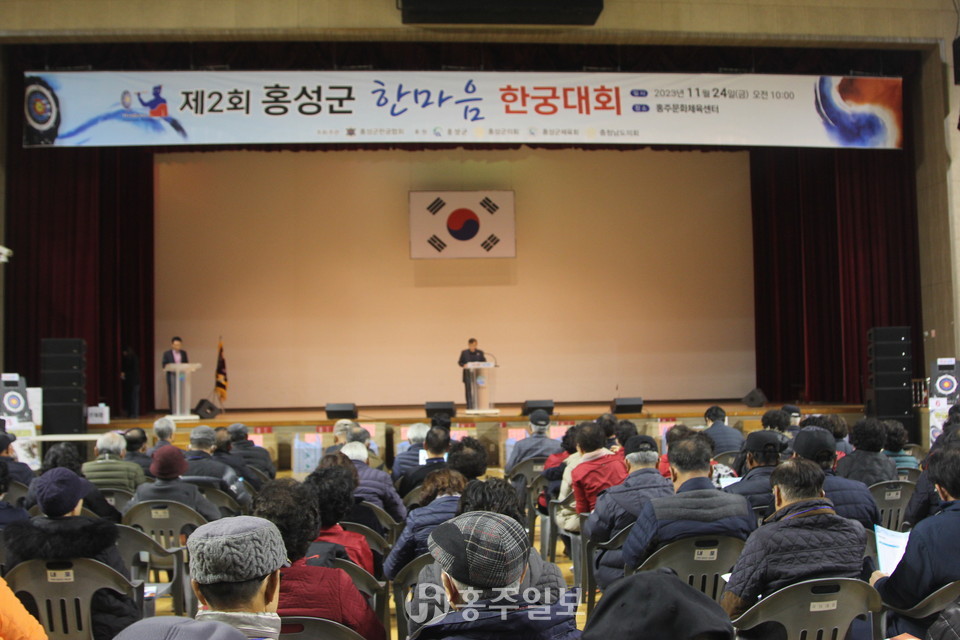 홍성군한궁협회(회장 최용영)는 24일 홍주문화체육센터에서 이용록 홍성군수, 이종화·이상근 충청남도의회 의원, 백승균 홍성군체육회장, 허광 사단법인 대한한궁협의장과 관내 기관장 등을 비롯한 군민 200여 명이 참석한 가운데 ‘제2회 홍성군 한마음 한궁대회’를 개최했다.<사진>