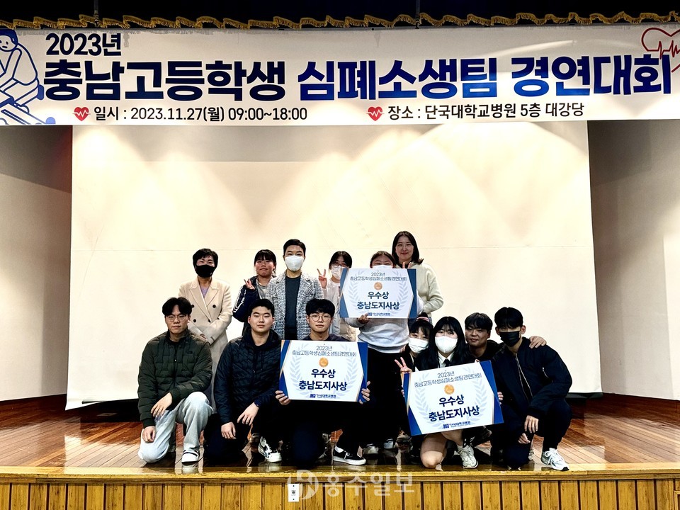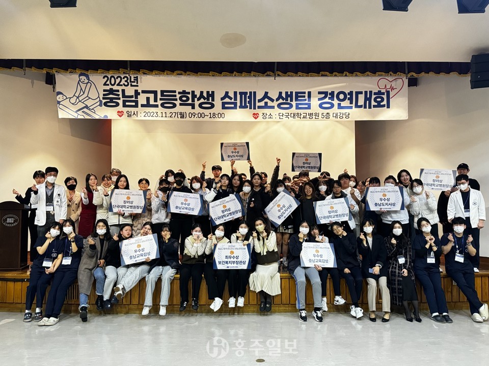 충남도는 지난 27일 단국대 의과대학부속병원(이하 단국대병원) 5층 대강당에서 ‘2023년 제12회 고등학생 심폐소생술 경연대회’를 개최했다.