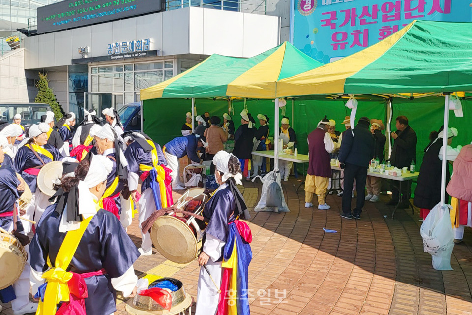 홍성군풍물연합회(회장 김석환)는 지난달 25일 광천문예회관에서 이용록 홍성군수, 이선균 홍성군의회 의장과 장재석 부의장, 신동규 의원, 이종화·이상근 충남도의회 의원, 홍문표 국회의원과 관내 기관·단체장 등을 비롯한 풍물패 회원과 주민 등 200여 명이 참석한 가운데 정기발표회를 개최했다.