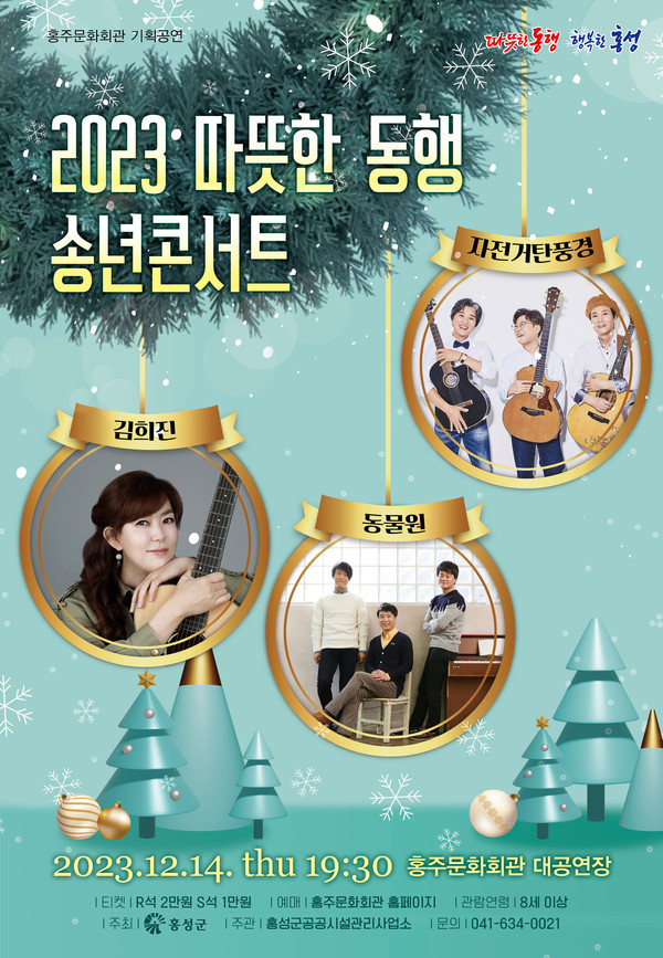 홍주문화회관은 2023년을 마무리하며 따뜻하고 감성 가득한 노래와 함께 추억을 떠올릴 수 있는 ‘2023 따뜻한 동행 송년 콘서트’를 오는 14일 오후 7시 30분 무대에 올린다.