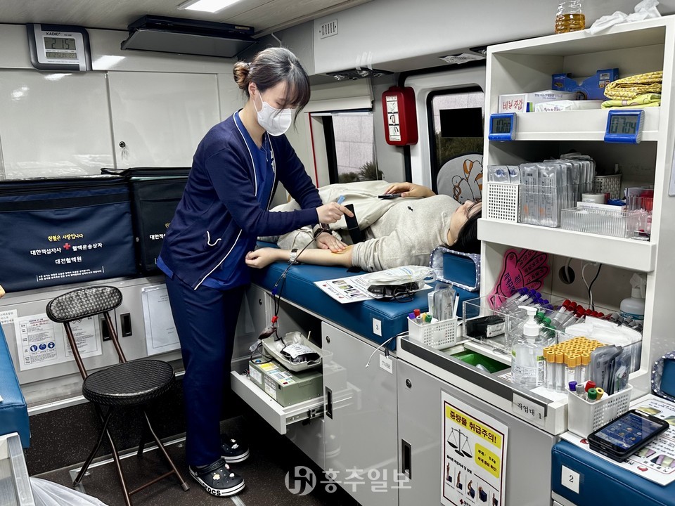충남교육청(교육감 김지철)은 지난 28일 도교육청 앞 현관에서 대한적십자사 대전·세종·충남혈액원과 함께 이웃 사랑과 생명 나눔 실천을 위해 ‘2023 사랑 나눔 헌혈의 날’ 행사를 진행했다.