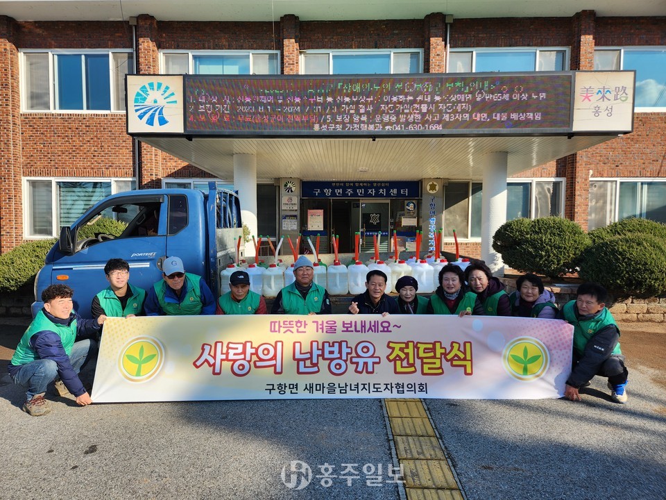 구항면새마을남·여지도자협의회(회장 고인재·이순애)는 겨울철을 맞아 지난달 28일 구항면의 취약계층 23가구에 난방유를 지원했다.<사진>