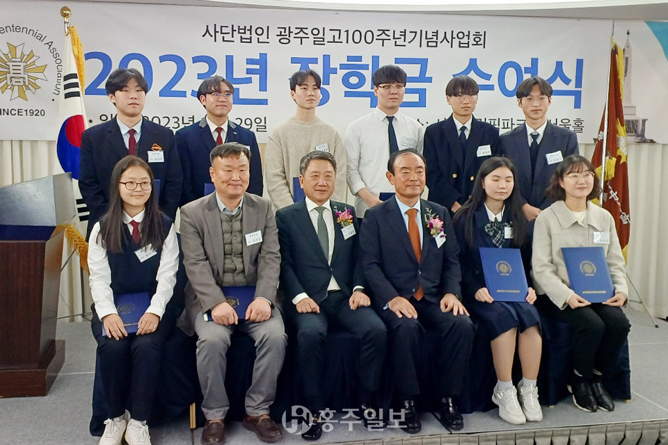사단법인 광주일고100주년기념사업회(회장 장병완)는 지난달 29일 서울올림픽파크텔 서울홀에서 홍성고등학교 김소진(1학년) 학생을 비롯한 10명의 학생들에게 장학금을 지급했다.<사진>