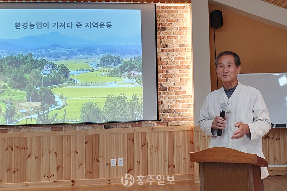 전국 최초로 오리 농법을 활용한 문당환경농업마을은 유기농 농산물을 생산하는 친환경 유기농업의 메카로 알려져 있다. 20여 명의 경상도 농업지도사들을 교육하기 위해 강의 준비로 분주한 친환경농산물의무자조금관리위원회 주형로 위원장을 ‘홍성환경농업교육관’ 2층에서 만났다.