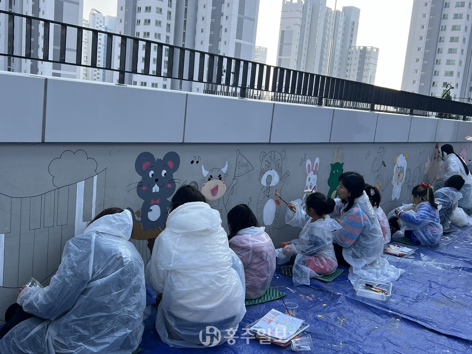 또한 옥상정원을 개방하면서 벽화 그리기, 소원카드 쓰기 등의 프로그램도 진행해 부모와 자녀로 구성된 5가족이 함께 아이들의 눈높이에 맞춘 12지신 동물, 나무, 어울림센터 로고 등을 그렸으며, 추운 날씨에도 불구하고 적극적인 참여와 한마음으로 힘을 보태 특색있는 벽화를 완성했다.