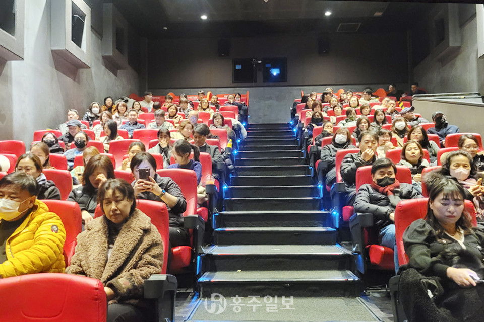 명동상가상인회(회장 김병태)는 지난달 29일 명동상가 상인들 간의 화합을 위해 지난 7월 1차에 이어 홍성종합터미널 내 CGV홍성점에서 영화 ‘서울의 봄’ 관람을 주관했다,<사진>
