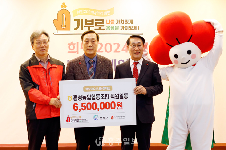 홍성농업협동조합(조합장 박문수)이 지난 12일 충남사회복지모금회 주관으로 홍성군청 대강당에서 열린 ‘희망2024 나눔캠페인 홍성군 순회 모금행사’에 성금 650만 원을 기부하며 희망2024 나눔캠페인에 동참했다.<사진>