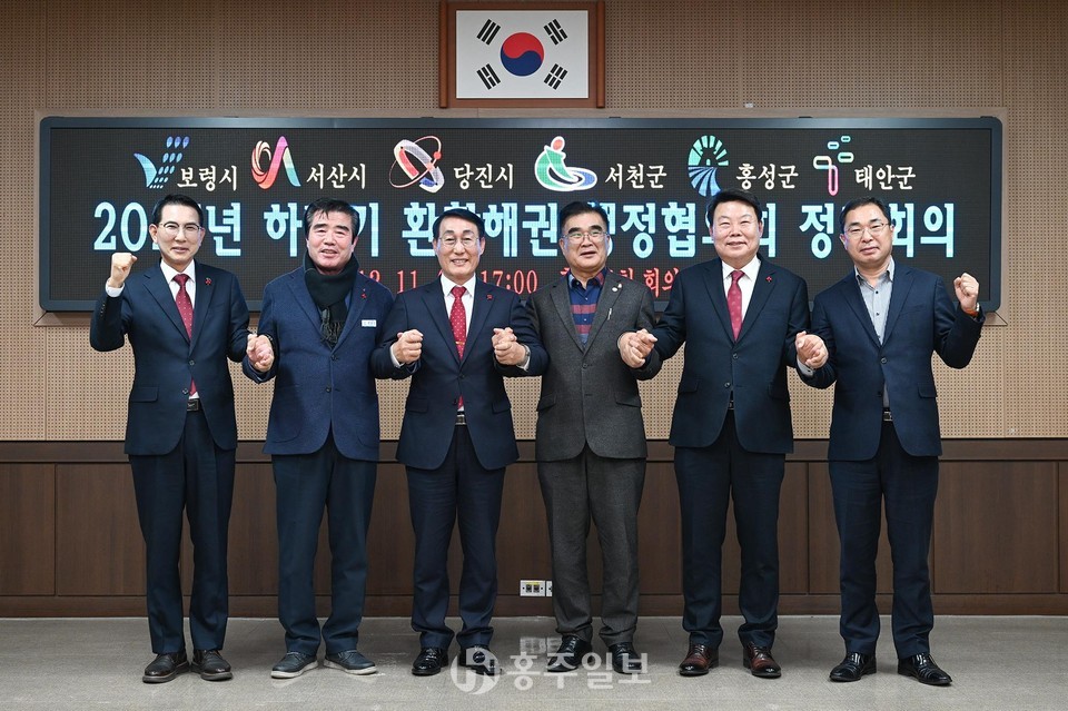 홍성군은 지난 11일 군청 회의실에서 홍성, 보령, 서산, 당진, 서천의 시장·군수와 태안 부군수가 참석한 가운데 서해바다를 공유하고 있는 6개 자치단체간 주요 현안사항 논의를 위한 2023년 하반기 환황해권 행정협의회를 개최했다.<사진>
