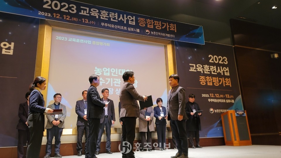 홍성군농업기술센터(소장 이승복)는 지난 12일 열린 ‘2023년 농업인대학 운영 우수기관 경진대회’에서 우수상을 수상했다.<사진>