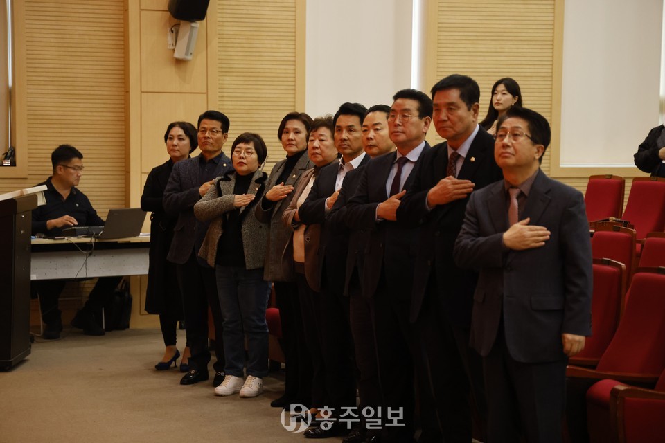 한편 이날 행사 초반 국민의례, 환영사, 축사 등을 마친 후 약 70여 분간 진행 예정이었던 군민 토론회가 시작되기 직전 행사장을 찾았던 이선균 홍성군의회 의장을 비롯한 9명의 군의원이 한꺼번에 자리를 떠나며 “홍성군의 미래를 말하는 자리에 정작 듣는 이가 없다”며 객석에서 강한 질타가 이어지기도 했다.