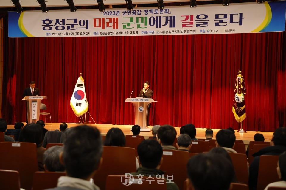 홍성군지역발전협의회(회장 이환진)는 지난 15일 홍성군농업기술센터에서 ‘2023년 군민공감 정책 토론회’를 개최하고 홍성군의 미래를 군민과 함께 고민하는 시간을 가졌다.