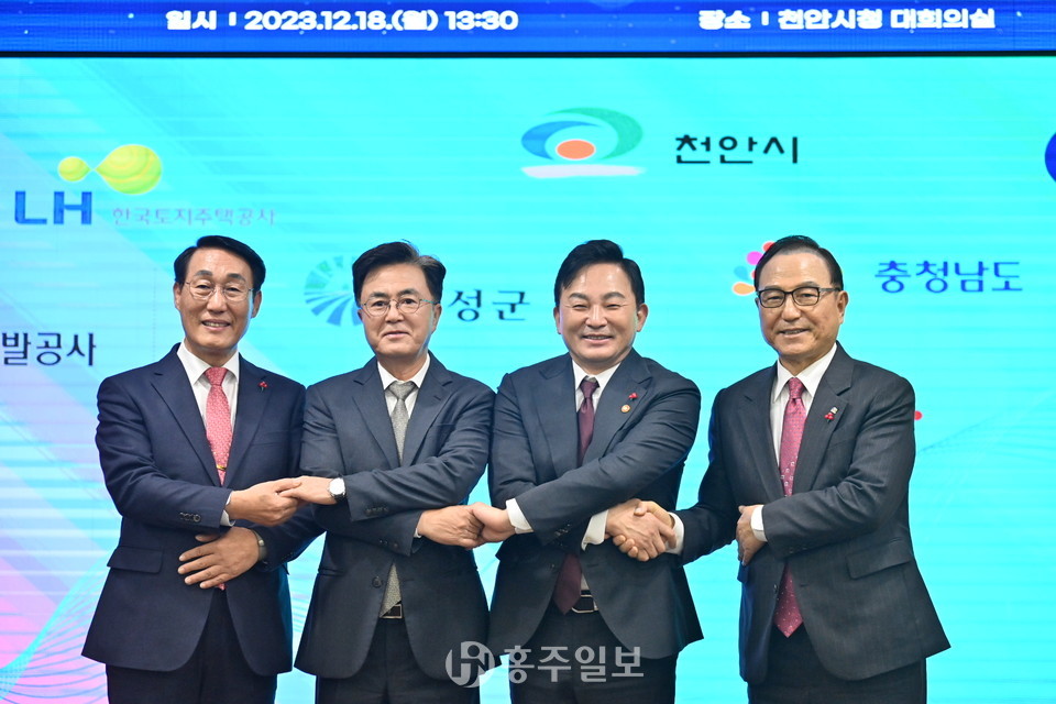 도는 지난 18일 천안시청 대회의실에서 김태흠 충남지사와 원희룡 국토부 장관을 비롯해 이용록 홍성군수, 박상돈 천안시장, 이한준 한국토지주택공사(LH) 사장, 정석완 충남개발공사 사장 등이 참석한 가운데, 현안회의 및 상생협약식을 개최했다.