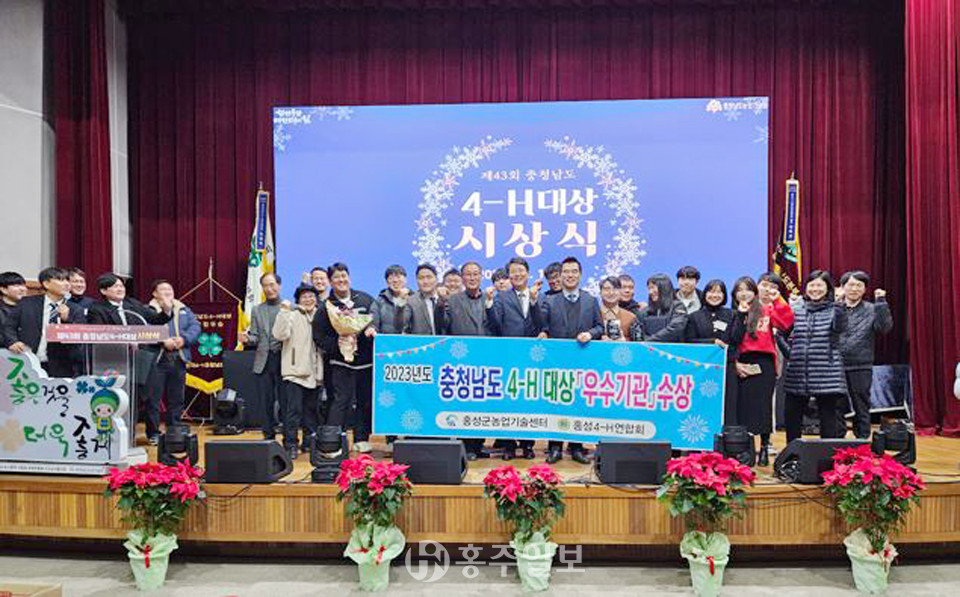 충청남도 4-H 우수기관 상은 시·군 4-H회 발전을 위해 노력한 농업기술센터에 수여하는 상으로 홍성군은 학생·청년 4-H회원 180여 명이 참여한 서울문화 탐방, 홍성사랑 국화축제와 연계한 4-H 경진대회 등 주요 행사 추진을 통해 4-H 활성화에 기여한 공로를 인정받아 수상하게 됐다.