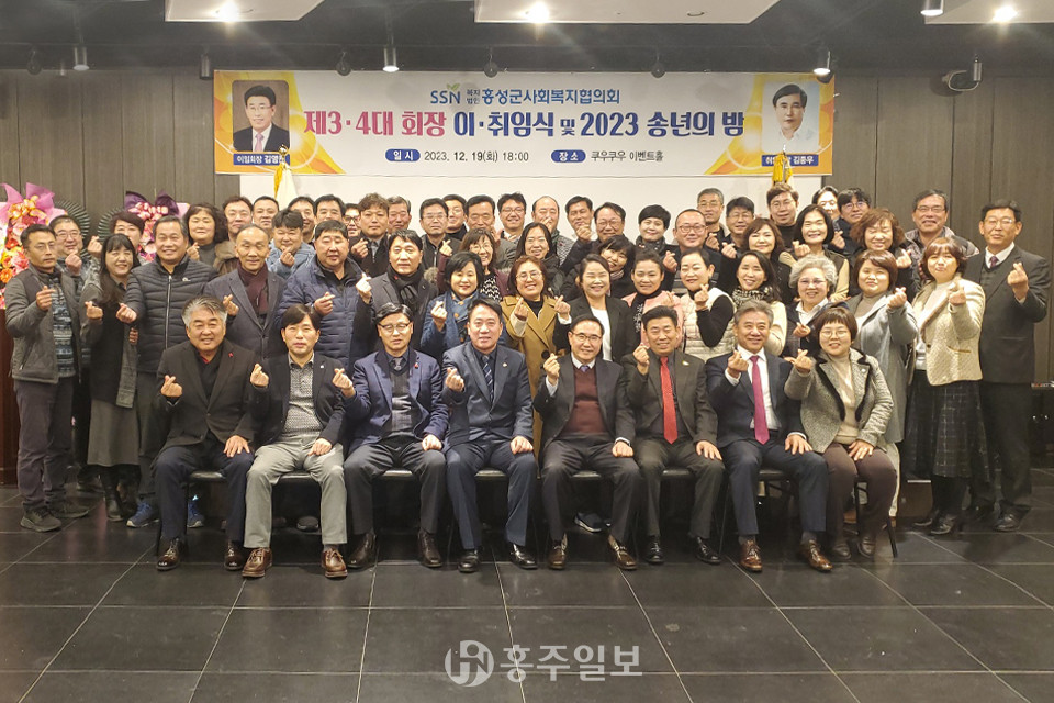 사회복지법인 홍성군사회복지협의회(이임회장 김영만·취임회장 김종우)는 지난 19일 내포신도시 모처에서 ‘제3·4대 회장 이·취임식 및 송년의 밤’을 개최했다.