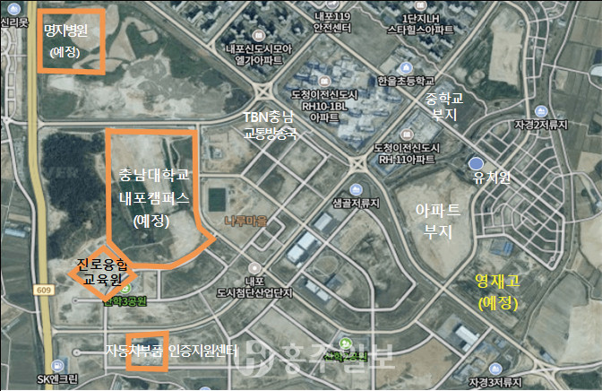 충남도청소재지인 홍성군 홍북읍 충남내포혁신도시의 유휴부지 8만㎡에 반도체와 모빌리티 인재를 집중적으로 양성할 과학영재고등학교 설립이 추진된다.<사진>