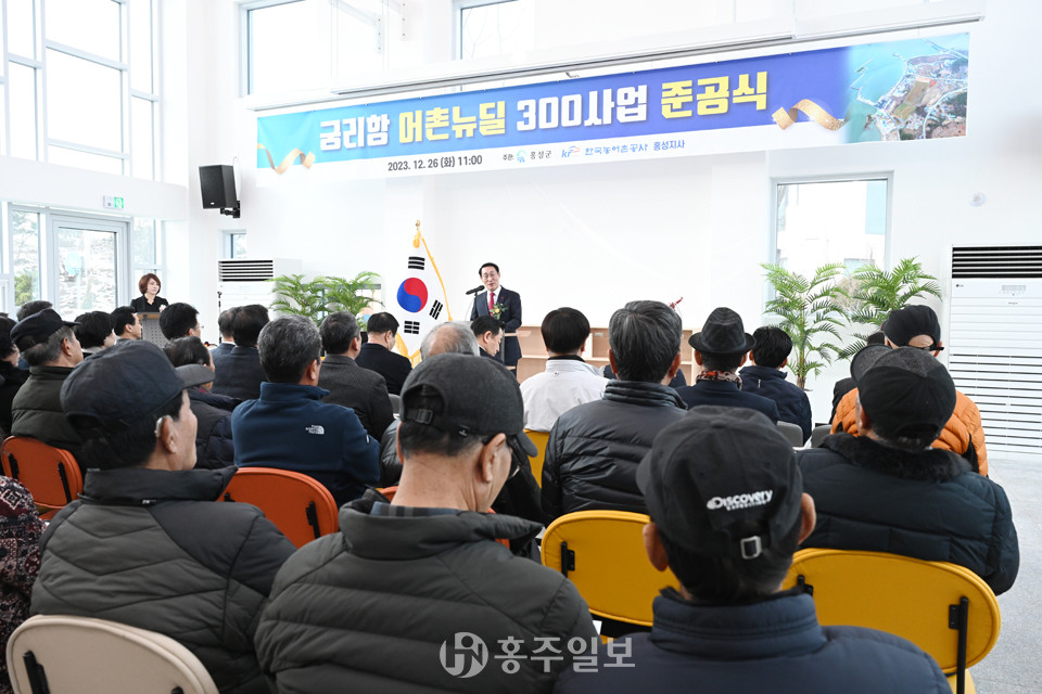 홍성군은 지난 26일 서부면 궁리 어울림센터에서 이용록 군수와 이선균 군의회 의장과 의원, 홍문표 국회의원, 이종화·이상근 도의원, 장민규 도 수산자원과장, 한국농어촌공사 홍성지사장, 마을주민, 어촌계, 선주협회, 기타 관계자 등 150여 명이 참석한 가운데 궁리항 어촌뉴딜300 준공식을 개최했다.