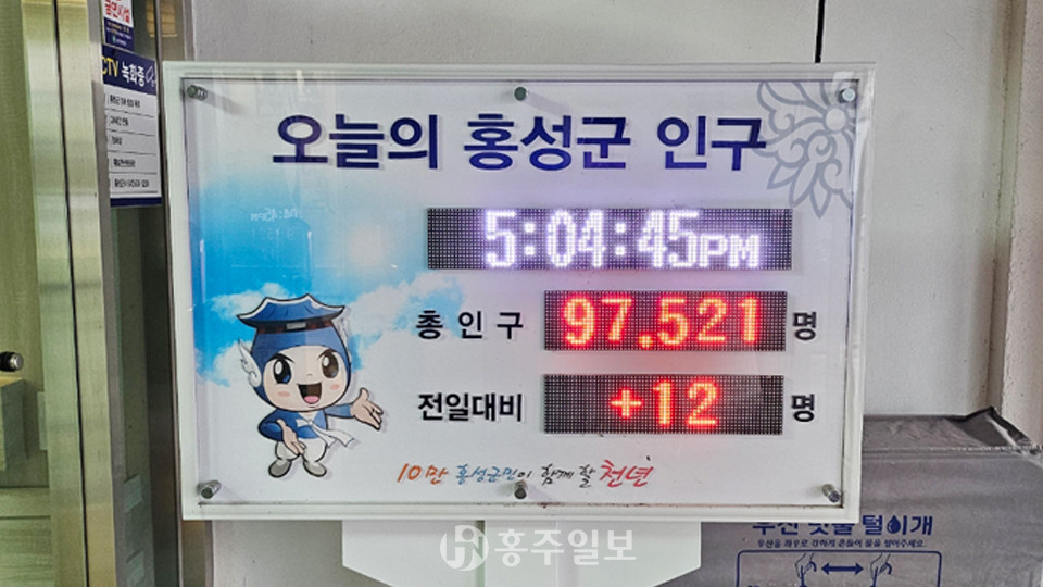 홍성군 인구 계속 줄어… 9만 8000명대 붕괴