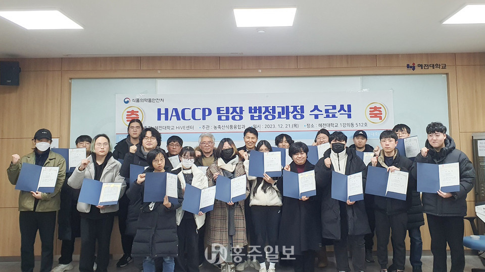 국내 최초 6차 산업전문 교육학과인 혜전대학교(총장 이혜숙) 농축산식품융합과는 2022년에 신설된 학과로 1학년 재학생 전원이 HACCP(식품위해요소중점관리기준) 팀장 자격을 취득하는 쾌거를 올렸다.