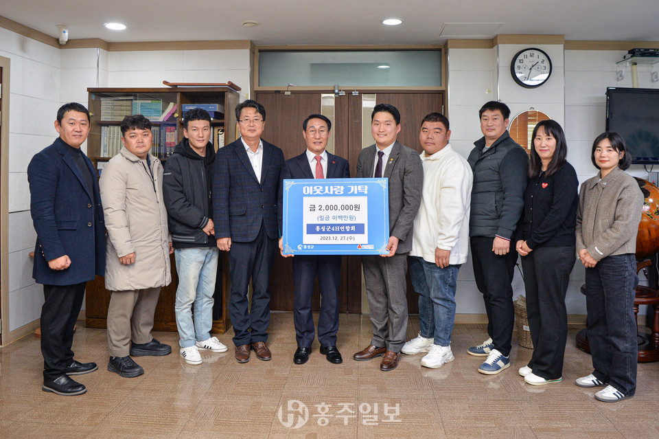홍성군4-H연합회(회장 임성환)가 지난 27일 홍성군청을 방문해 공동과제 활동과 국화축제 부스 운영 등을 통해 마련한 200만 원을 불우이웃돕기 성금으로 기탁했다.<사진>