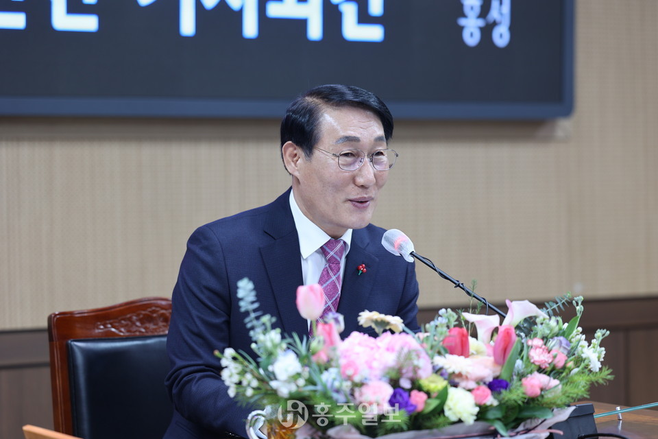 이 군수는 민선8기를 변치 않는 혁신의 정신으로 지역발전을 선도하기 위해 △모두가 살기 좋은 미래 산업도시 △지속발전 가능한 스마트 농어촌 도시 △천년의 이야기가 있는 문화관광 도시 △새롭게 거듭나는 행정중심 복합도시 △사각지대 없는 촘촘한 복지도시 △군민이 행복한 안전한 도시 등 6대 추진 전략을 자강불식의 각오 아래 2024년 홍성 군정을 운영해 나갈 계획이다.