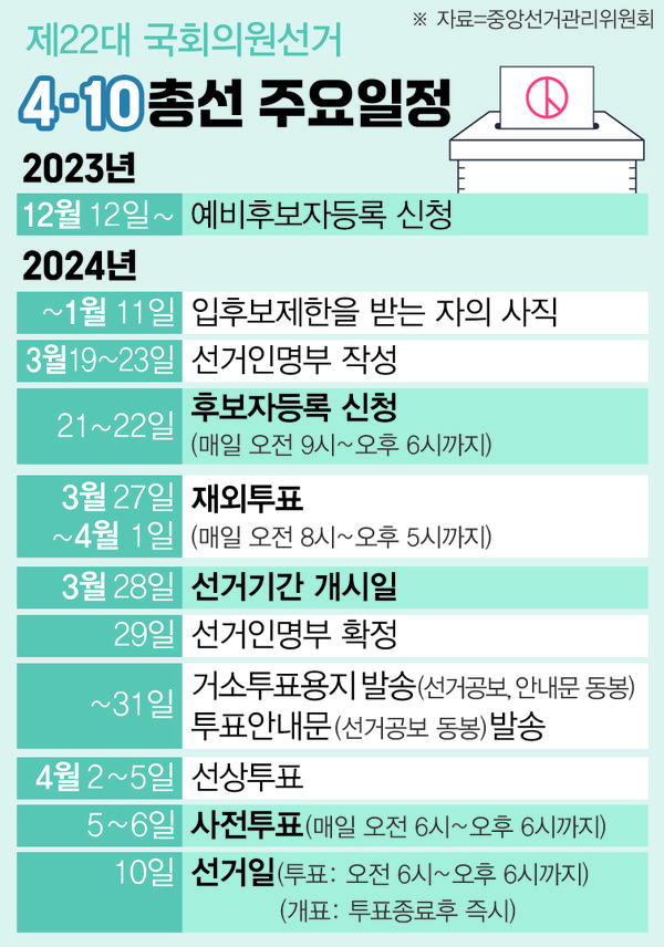 오는 4월 10일 치러지는 ‘제22대 국회의원 선거’가 올해 1월 1일 100일 앞둔 상황에서 오늘(4일)로 꼭 97일 앞으로 다가왔다. 야당인 더불어민주당은 ‘정권 심판론’을, 여당인 국민의힘은 ‘거야 견제론’으로 맞서는 가운데, 여야의 전직 당 대표들이 신당 창당에 나서는 초유의 상황 속에서 총선의 해를 맞았다. 임기 중반에 접어드는 윤석열 대통령, ‘민주당 심판’을 외치는 한동훈 비상대책위원장의 국민의힘, ‘정권의 독주를 멈추겠다’는 이재명 대표의 더불어민주당, 여기에 거대 양당 정치의 틈을 노리는 제3지대 세력은 90여 일 앞둔 상황에서 사활 건 ‘민심 잡기’ 경쟁에 나선 형국이다.