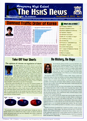그리고 11명의 학생들과 담당 영어 선생님, 원어민이 함께 편집을 맡아 9월 20일부터 지금까지 2개월 가까이 노력을 하여 지난 12일, 전교생에게 영자신문을 1부씩 나누어주는 성과를 거두었다.