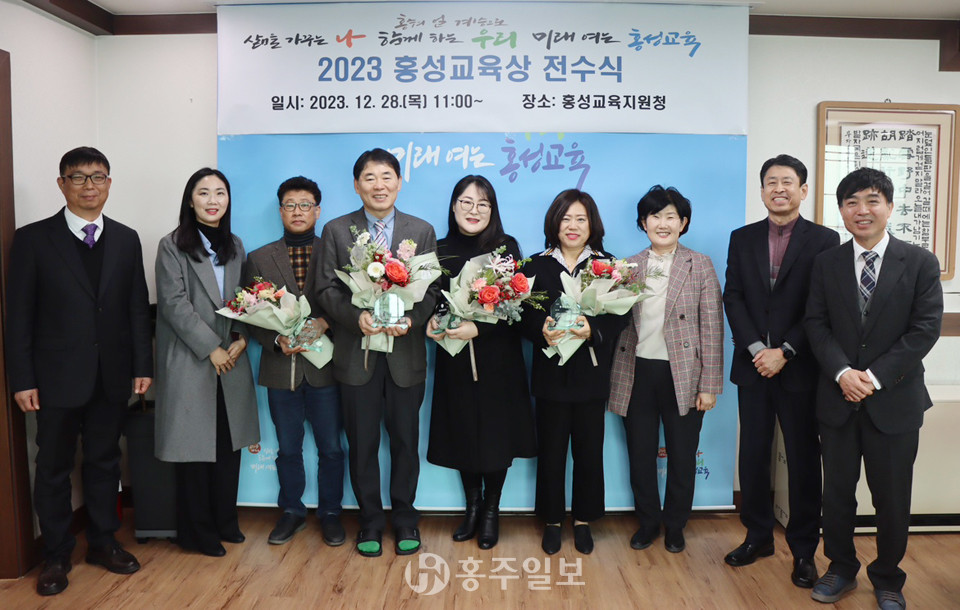 충청남도홍성교육지원청(교육장 이정순)은 지난해 12월 28일 ‘2023 홍성교육 교육공로자 표창패 수여식’을 개최했다. 이날 △홍성교육상 부문 △교육공로상 부문 등 총 29명의 대상자를 선정해 표창장과 표창패와 함께 상품을 전달했다.