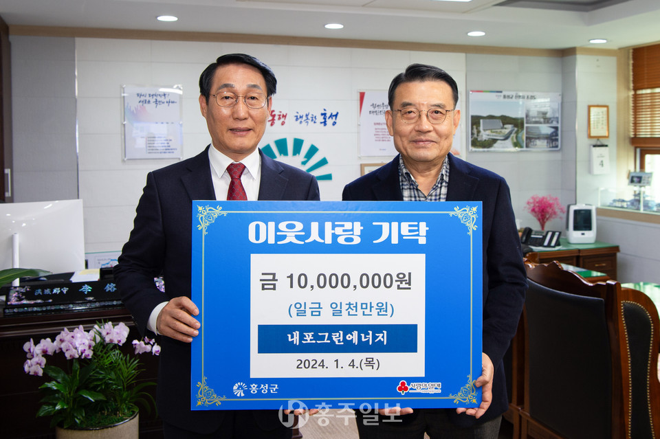 나동현·안관식 내포그린에너지 대표는 지난 2022년 코로나19가 지속되는 상황 속에서도 지역사회와의 상생을 위해 성금 1000만 원을 기탁한 바 있다.