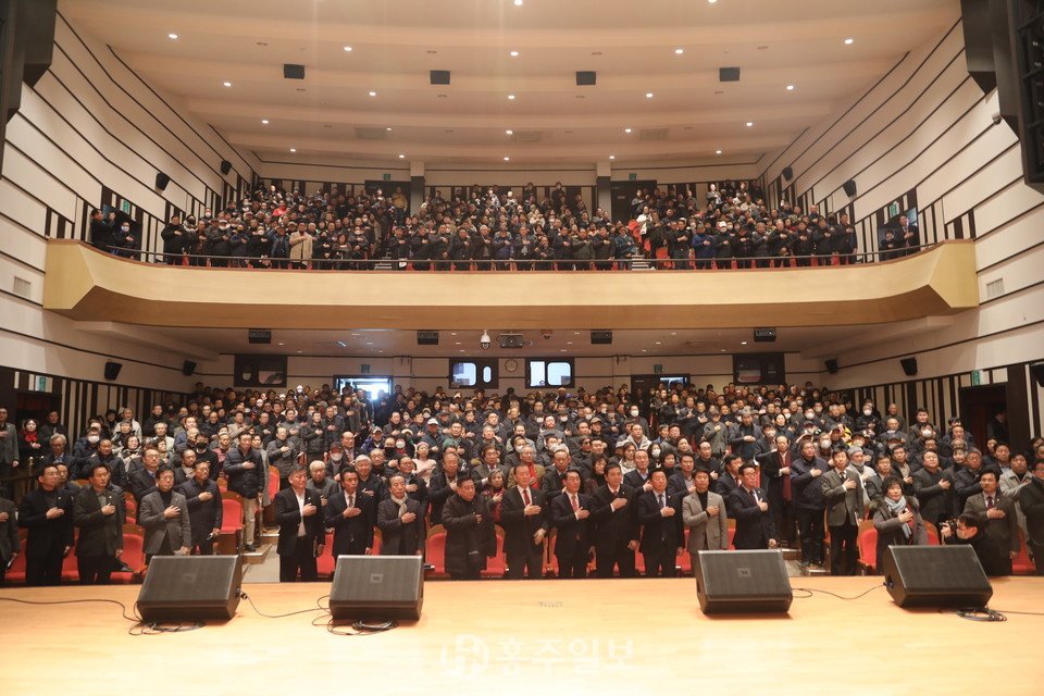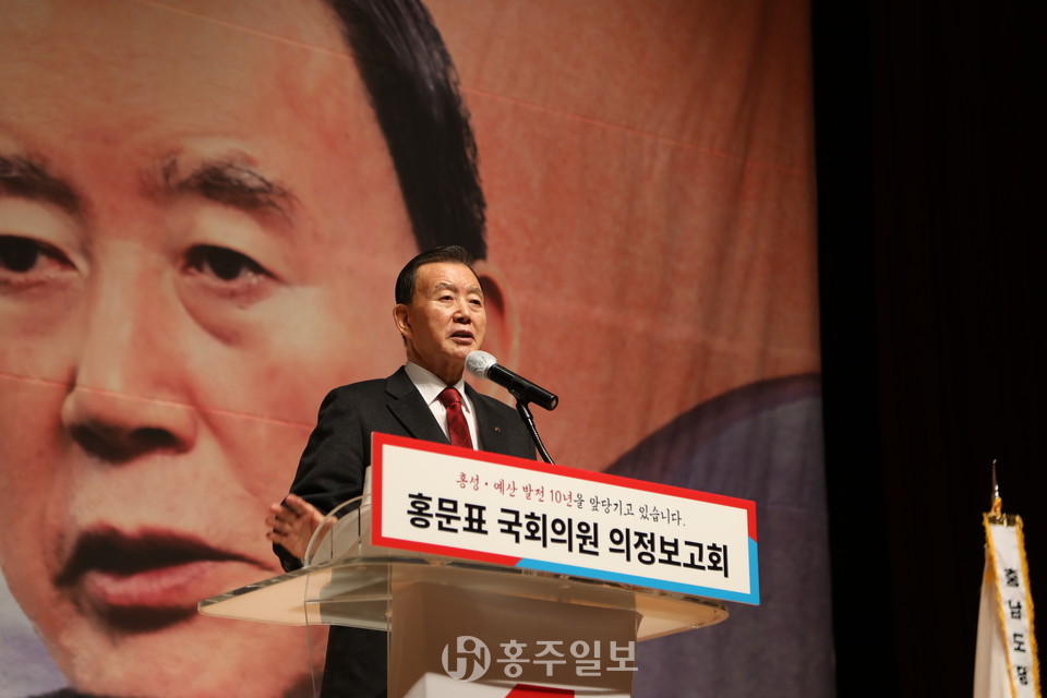 홍문표 국회의원(국민의힘, 홍성·예산)의 2024년 의정보고회가 8일 오후 홍주문화회관 대강당에서 군민 1500여 명이 참석한 가운데 성황리에 개최됐다.<사진>