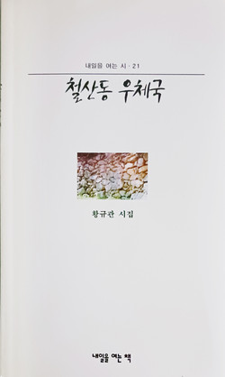 위 시는 고뇌에 찬 성찰의 노동 시 작업을 통해 끊임없이 노동의 참된 가치와 얼의 새로운 길을 만들어 제시해 가는 황규관 시인이 1998년 출판사 ‘내일을 여는 책’에서 펴낸 첫 시집 <철산동 우체국>의 표제 시 전문이다. 통상적인 부 배치 없이 표제시를 비롯해 ‘한강’ ‘김氏’ ‘病’ ‘푸른 작업복을 입으며’ ‘섬’ 등 노동의 성찰을 통과한 63편의 시들이 수록된 시집은 읽는 이를 한없이 숙연하게 한다.