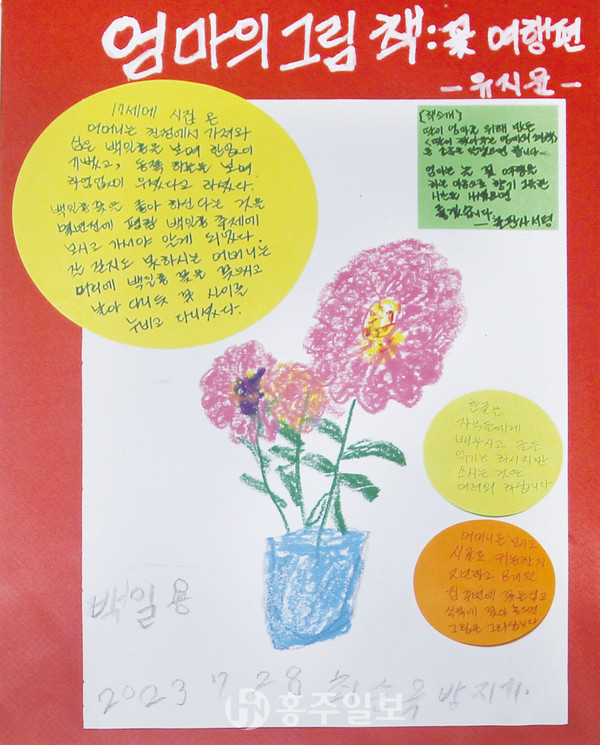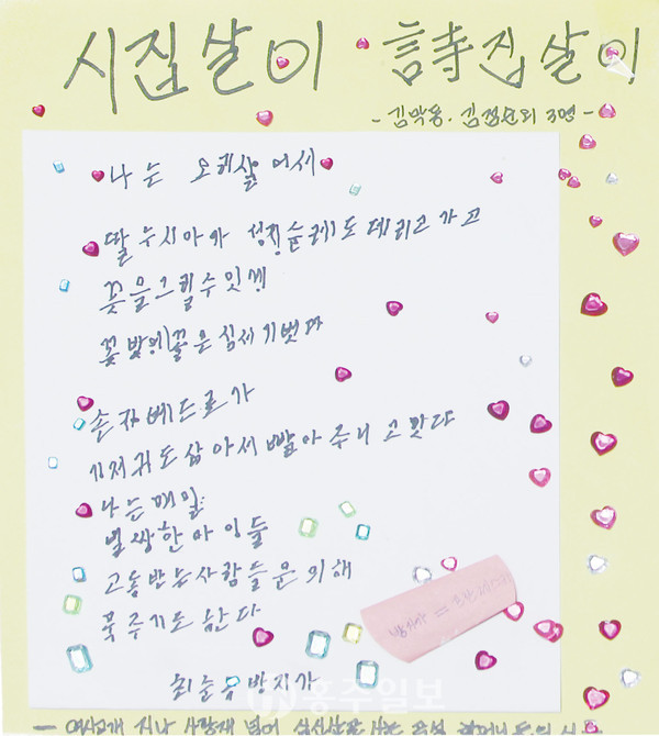 최순옥 프란체스카 어르신은 “1985년 대전여자고등학교로부터 ‘장한어머니 상’을 받았고 지난해 9월 한 달간 홍성도서관 그림 전시회에 참여해 딸 루시아, 외손녀 세실리아 그림도 함께 전시하는 기회를 가졌어요”라고 뿌듯해 했다.