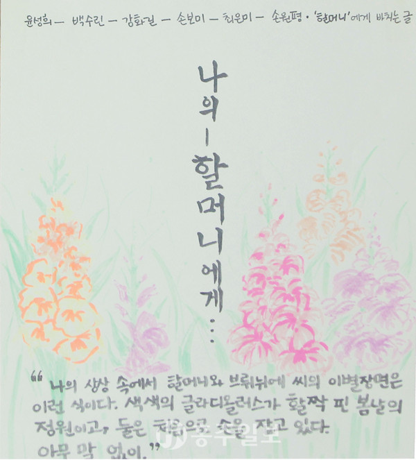 그때 시절을 회상하며 환하게 웃으시는 프란체스카(세례명) 최순옥(96세) 어르신은 오늘도 하얀 도화지에 무언가를 그리기 시작하면서 화폭에 빠져들었다.