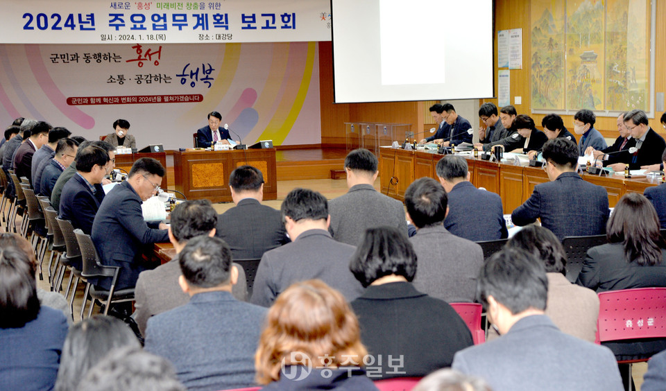 홍성군은 지난 18일 대강당에서 민선8기 새로운 ‘홍성’ 미래비전 실현을 위한 2024년 주요업무계획을 개최했다.