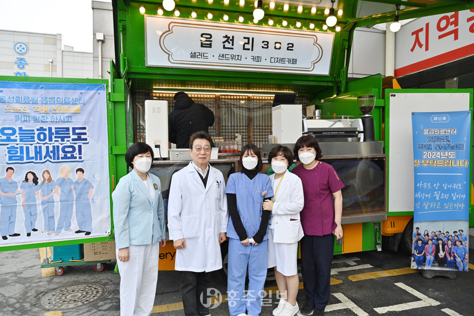 홍성의료원(원장 김건식) 응급실 앞에 지난 22일 드라마나 영화 촬영장에서 보는 커피차가 깜짝 등장했다. 커피차의 주인공은 홍성의료원에 근무하는 응급실 김수정 간호사이다. 김수정 간호사는 커피 업체의 이벤트에 당첨돼 응급환자들을 위해 항상 고생하는 119구급대원, 환자이송단, 응급실 직원 등 동료 의료진을 응원하는 마음으로 100잔의 커피를 제공받게 됐다.