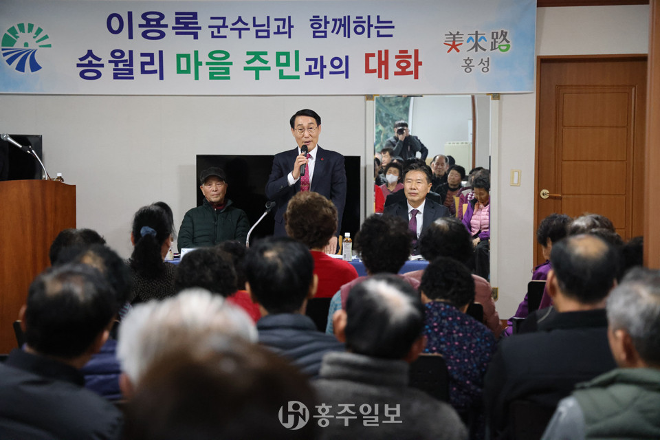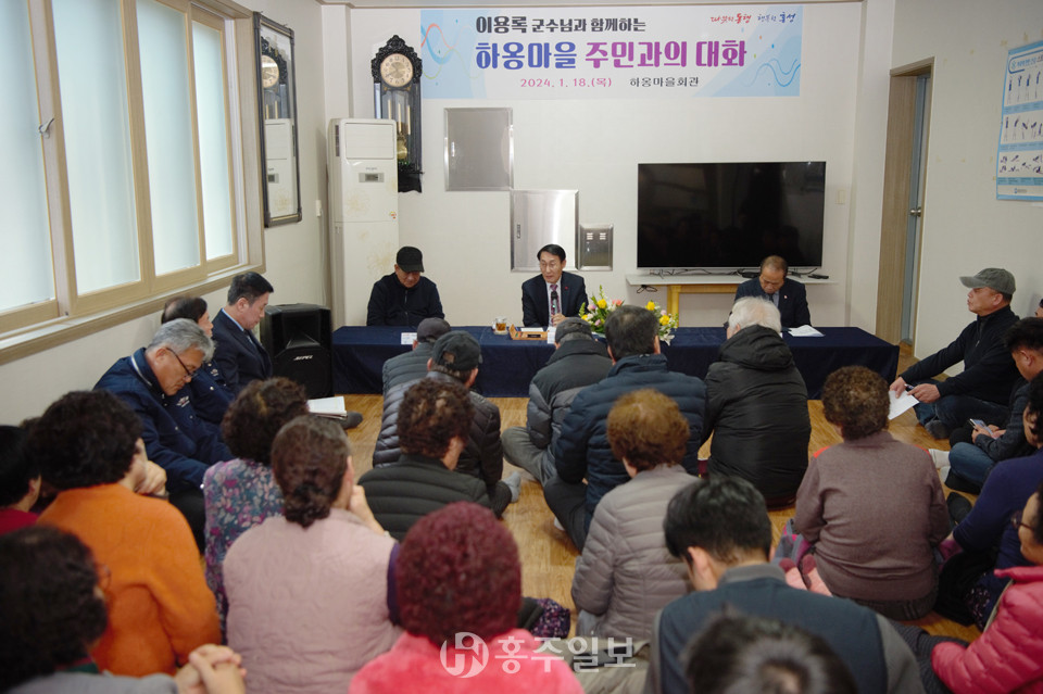 이용록 군수는 첫날 홍성읍 월산1구(이장 유태섭)와 송월리(이장 윤권영)를 방문해 군민과의 대화 자리에서 마을 단위 민생현장 방문의 취지와 지난해 주요 성과, 올해 군정 운영 방향, 읍·면별 현안 및 역점사업에 대한 설명을 차례로 진행하며 군민의 이해도 향상에 중점을 두고 진행했다.
