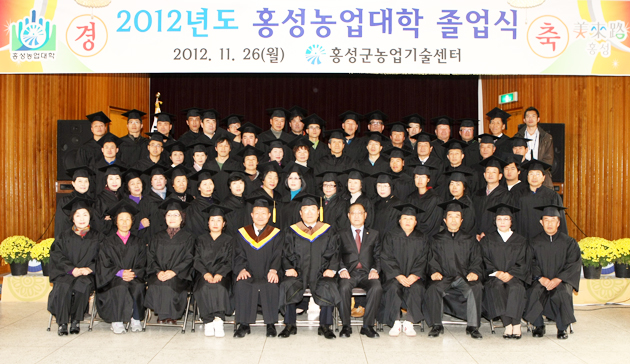 홍성농업대학(학장 김석환 군수) 학생들이 1년간의 교육과정을 마치고 지난 26일 오후 2시 홍성군농업기술센터 대강당에서 가족들이 지켜보는 가운데 빛나는 졸업장을 받았다.