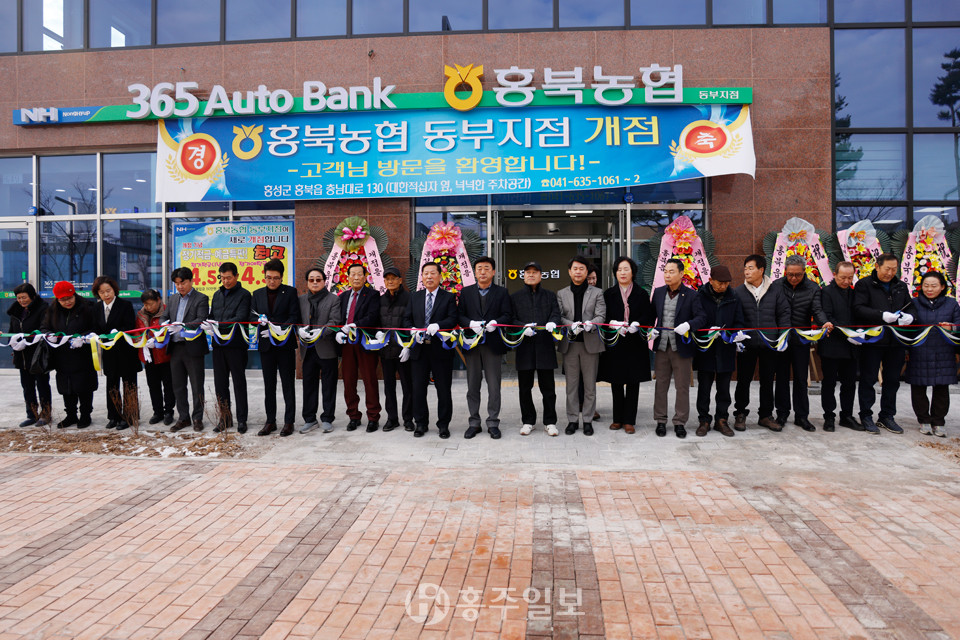 이날 개점식에는 장순찬 조합장을 비롯해 홍북농협 임직원들과 김두철 홍북읍장, 이상근 도의원, 이정윤 군의원, 문병오 군의원, 이형군 우체국장 등 총 60여 명이 참석했다. 행사는 장 조합장의 감사 인사와 함께 커팅식으로 마무리했다. 홍북농협 동부지점은 지난해 7월 착공해 지난달 22일 준공했다. 지상 1층은 금융 점포, 지상 2층은 업무사무실로 임대할 예정이다.