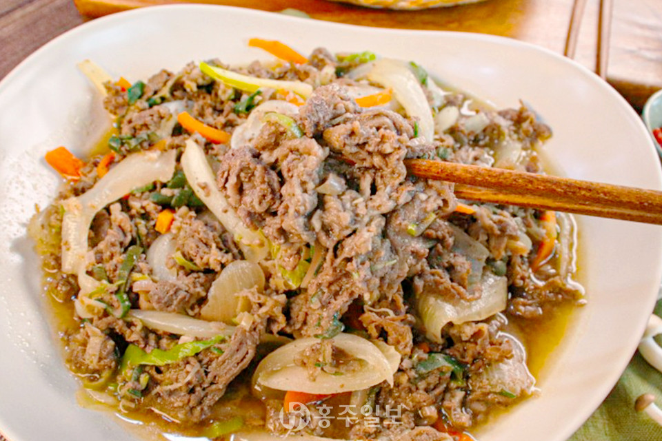 24시간 숙성 시킨 홍성한우를 사용해 식감이 부드럽고 간이 세지 않아 어르신들과 아이들 모두가 즐길 수 있는 메뉴이다. 또 61년 전통의 비법소스와 육수로 마늘향이 풍부하고 표고버섯의 육수가 고기와 잘 어우러져 감칠맛이 돌아 나중에 또 생각나는 음식이다. 조리는 냄비에 불고기를 넣고 육수를 기호에 맞게 부어 간을 조절한 다음 익혀주면 간단하게 조리가 끝난다. 맛도 좋고 홍성한우이기에 손님들이 왔을 때 대접하기에도 좋다.