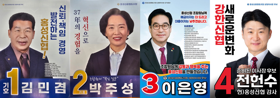 지난 2일부터 공식 선거운동에 돌입했으며, 오는 15일에 홍성읍 홍주문화회관에서 치러질 예정인 이사장 선거는 조합원 총회 이후에 실시될 예정이다. 선거를 위한 후보자들이 이미 입후보를 했는데, 최승천 이사의 출마를 취소함으로써 4명의 후보자들이 이사장 자리를 놓고 4파전을 펼치게 됐다.